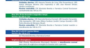 Prefeitura divulga horários da Saúde em Cassilândia durante o fim de ano A Prefeitura de Cassilândia informou que as unidades de saúde do município terão horários especiais de atendimento no período de fim de ano, entre os dias 22 de dezembro de 2025 e 5 de janeiro de 2026. A …