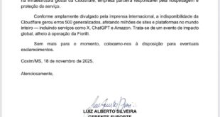 Serviços digitais da Prefeitura ficam indisponíveis por problema global A Prefeitura de Cassilândia informa que a instabilidade registrada nesta terça-feira (18) nos serviços online do município, incluindo emissão de notas fiscais, portais integrados e demais sistemas, não tem relação com servidores locais ou com a operação interna da Prefeitura. De …