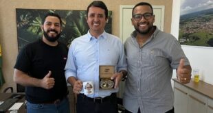 Basileu JR um dia organizadores do desfile dos 71 anos de Cassilândia entregou a fivela referente aos 71 anos da cidade que será um dos prêmios da cavalgada ao prefeito Rodrigo de Freitas e a vice prefeita Sumara. Na foto também aparece o vereador Max Estevo. A Fivela será entregue …