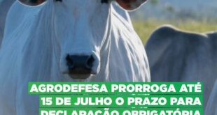 DECLARAÇÃO DE REBANHO I A Agrodefesa prorrogou até o dia 15 de julho o prazo para que o pecuarista efetue a primeira etapa de declaração obrigatória de rebanho nos 246 municípios goianos. A medida foi oficializada por meio da Portaria n° 361/2025 da Agência, publicada nesta quinta-feira (26/06) no Diário …