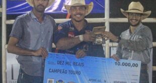 FINALISTAS RODEIO EM TOUROSCAMPEÕES EMPATADOSCAIO SANTANA / PARAÍSO DAS ÁGUAS-MS KAYKE FERREIRA / CACHOEIRA ALTA-GO264,25 Pts3° CLEBER HENRIQUE / CASSILÂNDIA-MS263,00 Pts4° LUIZ GUSTAVO / TUPÃ-SP 262,25 Pts5° CARLOS ANDRÉ / IPAMERI-GO174,25 PTS