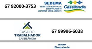 SECRETARIA DE DESENVOLVIMENTO ECONÔMICO E MEIO AMBIENTE DE CASSILÂNDIA DIVULGA SEUS CONTATOS
