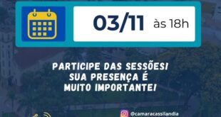 Read More »CÂMARA DE CASSILÂNDIA INFORMA SESSÃO E PAUTA DA REUNIÃO ORDINÁRIA