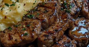 PICADAS DE CARNE COM MANTEIGA DE ALHO E PURÊ DE BATATA CREMOSO Ingredientes: Para as picadas de carne:450g de bife (lombo ou entrecosto), cortado em cubos2 colheres de azeite3 colheres de manteiga sem sal4 dentes de alho picados1 colher de sal1/2 colher de pimenta preta1/2 colher de flocos de pimenta …
