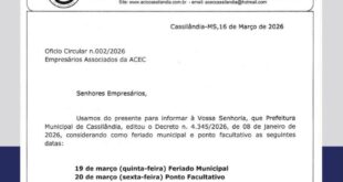 Secretaria de Saúde define horário de funcionamento durante feriado do Padroeiro em Cassilândia A Secretaria Municipal de Saúde de Cassilândia divulgou resolução que estabelece o horário de funcionamento das unidades de saúde durante o feriado municipal do Dia do Padroeiro São José, celebrado em 19 de março. De acordo com …