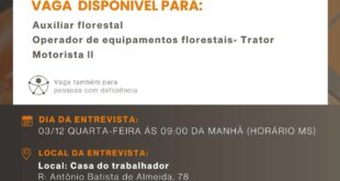 Read More »GRUPO PESSOA INFORMA VAGAS DE EMPREGO E ENTREVISTAS NA CASA DO TRABALHADOR EM CASSILÂNDIA AMANHÃ