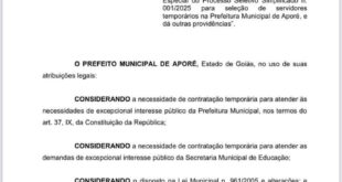 Read More »DECRETO N° 007/2025 PREFEITURA MUNICIPAL DE APORÉ