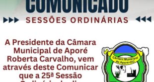 Read More »CÂMARA MUNICIPAL DE APORÉ INFORMA SESSÃO