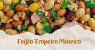 Feijão Tropeiro MineiroIngredientes:- Sal e pimenta-do-reino a gosto- 1 xícara de farinha de mandioca- 2 ovos- 2 colheres de sopa de óleo- 2 dentes de alho picados- 1 cebola picada- 2 colheres de sopa de cheiro-verde picado- 200g de carne seca dessalgada, cozida e desfiada- 2 xícaras de feijão carioca …