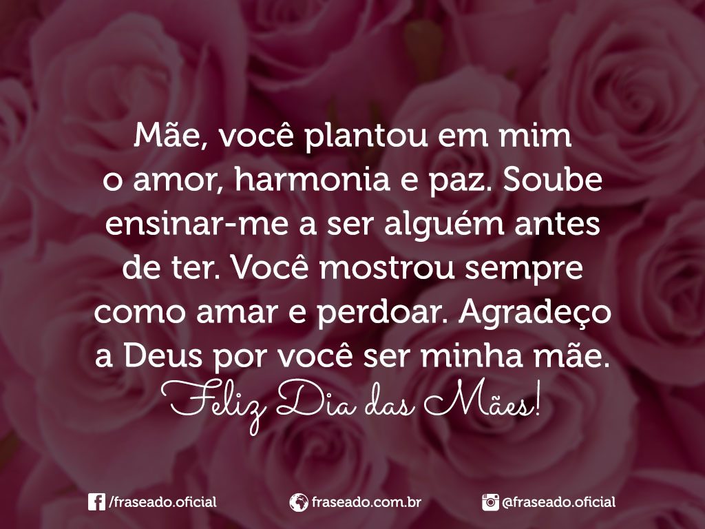 Que traz consigo os dons divinos do amor do saber do proteger. Quero neste dia desejar a todas as mães a minha a sua tudo aquilo que a de melhor nesta vida. Desejar que Deus lhes cubra de bênçãos, que o amor seja constante em suas vidas , que a paz se faça presente em seus lares que a saúde seja seu bem comum, a sabedoria seu guia.