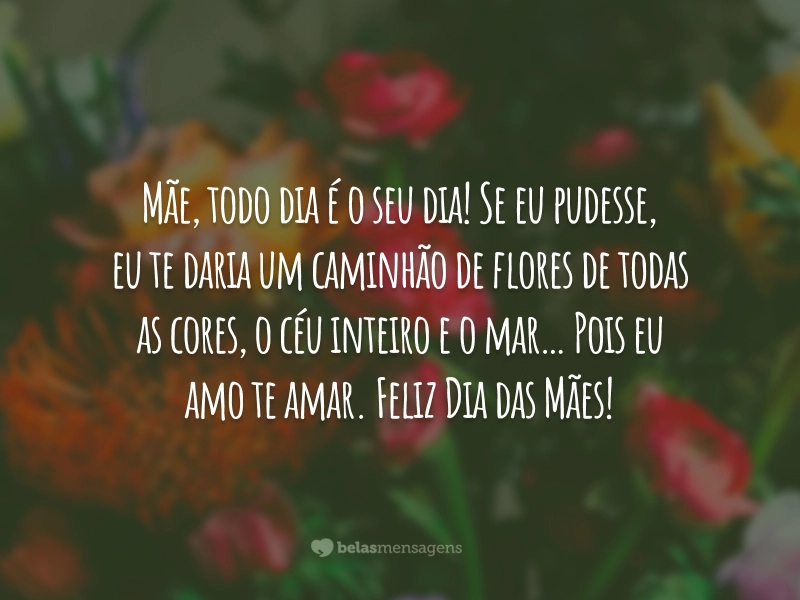 O que posso dizer, é que “Mãe” é uma palavra tão pequena, mas é muito forte e importante para todos nós, ela carrega tanto amor, carinho, afeto, acolhimento, força, proteção, sabedoria.
