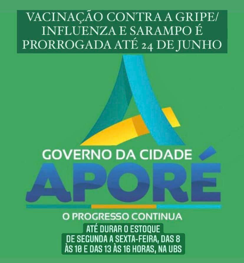 Em Aporé, a imunização contra a gripe/influenza e sarampo, está sendo realizada das 8 às 16 horas, na Unidade Básica de Saúde Sayonara da Penha Bernardo Guingnhoni (UBS).