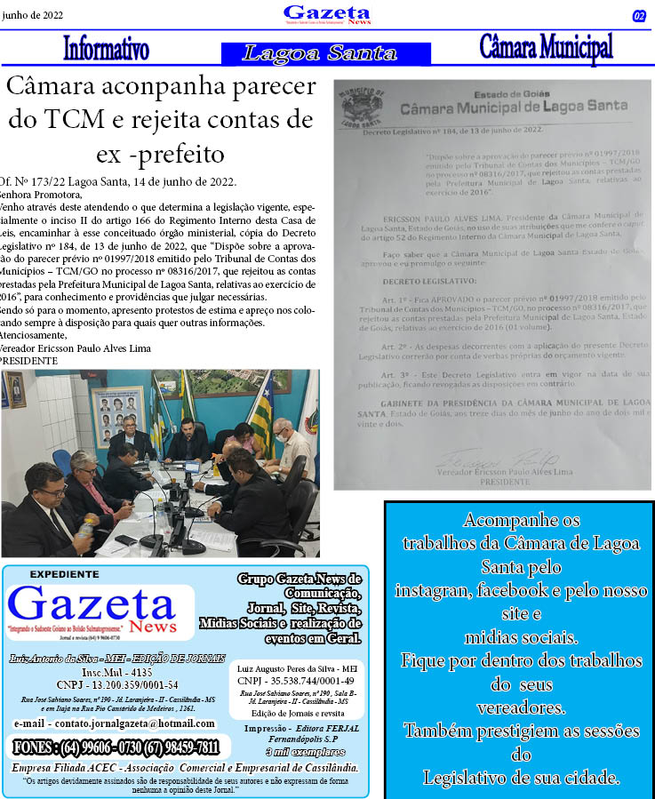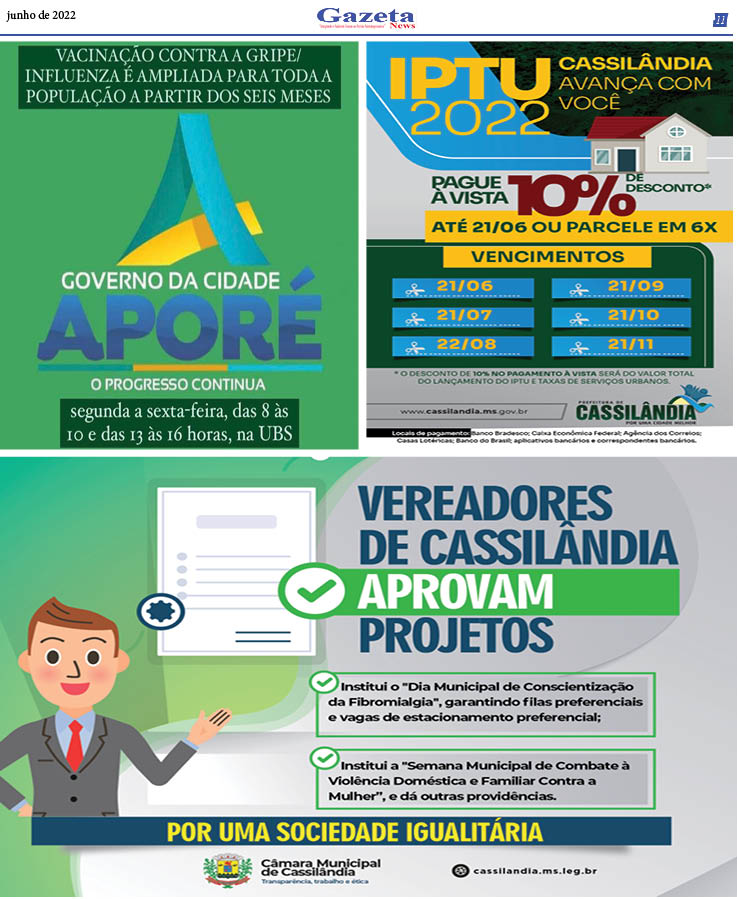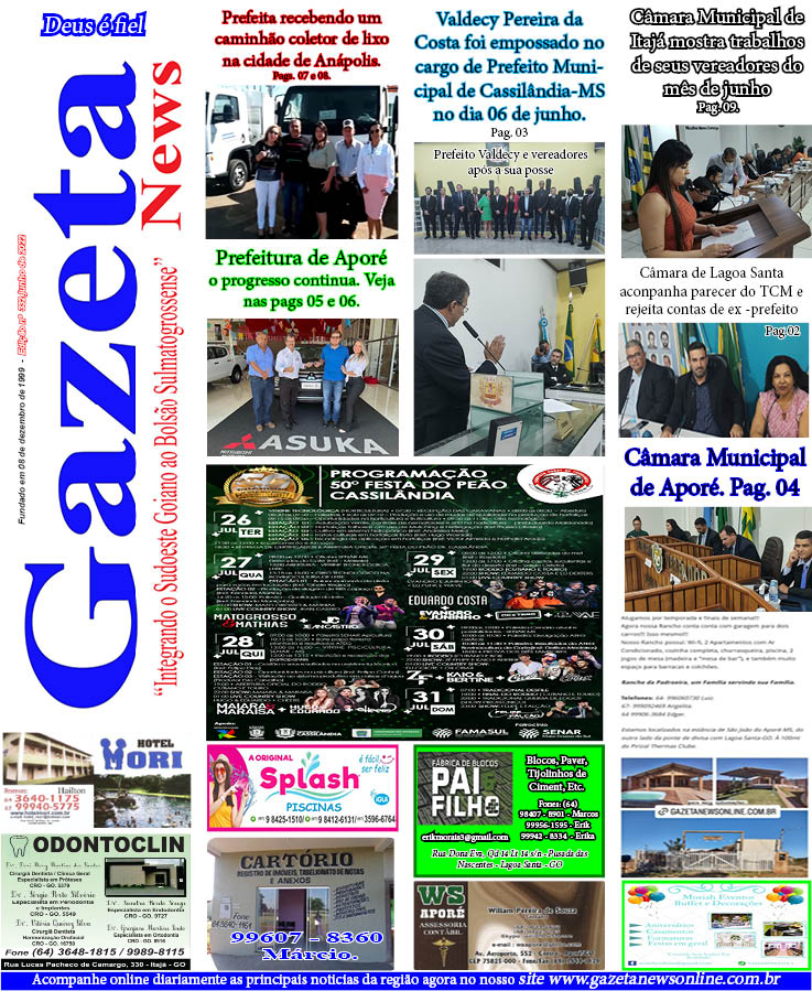 CONFIRA NOSSA EDIÇÃO IMPRESSA E DIGITAL DO GAZETA NEWS – PRESERVANDO A TRADIÇÃO DA IMPRENSA ESCRITA DA REGIÃO Gazeta 07/07/2022 Aporé - GO, Cassilândia - MS, Itajá - GO, Lagoa Santa GO, Últimas Notícias Leave a comment 182 Views Related Articles PREFEITURA MUNICIPAL DE CASSILÂNDIA INSTALA NOVAS PLACAS DE SINALIZAÇÃO NO SALTO DO RIO APORÉ 15 horas ago CAMPANHA DO AGASALHO EM APORÉ 15 horas ago GRANDE CAVALGADA EM APARECIDA DO TABOADO 15 horas ago Share Facebook Twitter Stumbleupon LinkedIn Pinterest