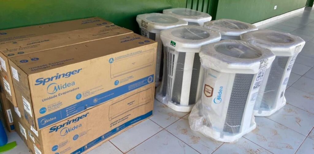 Por meio de doação, efetuada pela renomada Nardini Agroindustrial, às seis novas salas da Escola Municipal Iraí Ferreira de Souza, inauguradas em novembro do ano passado pela Prefeitura de Aporé, foram contempladas com ares-condicionados.