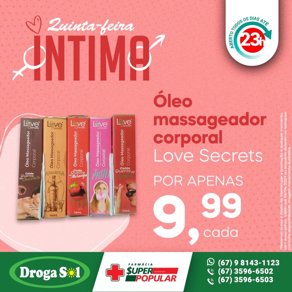 Óleo massageador corporal Love Secrets – R$ 9,99