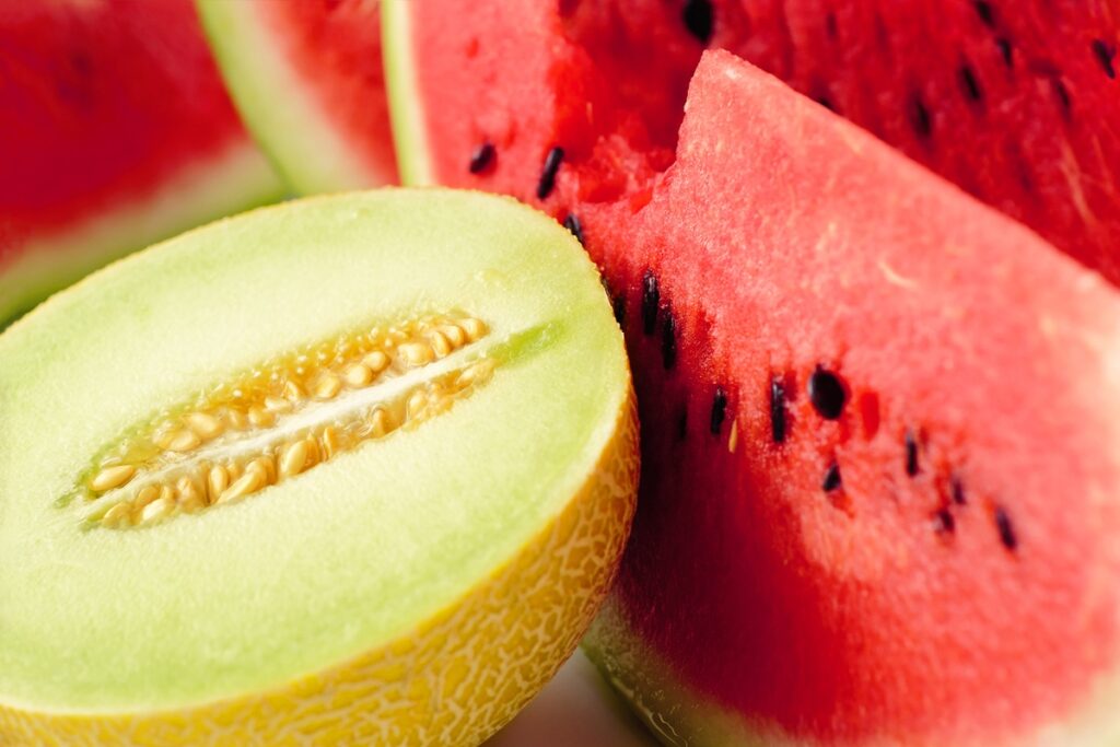 - Melão e melancia: Frutas alcalinas contribuem para manter o equilíbrio saudável do pH no estômago;