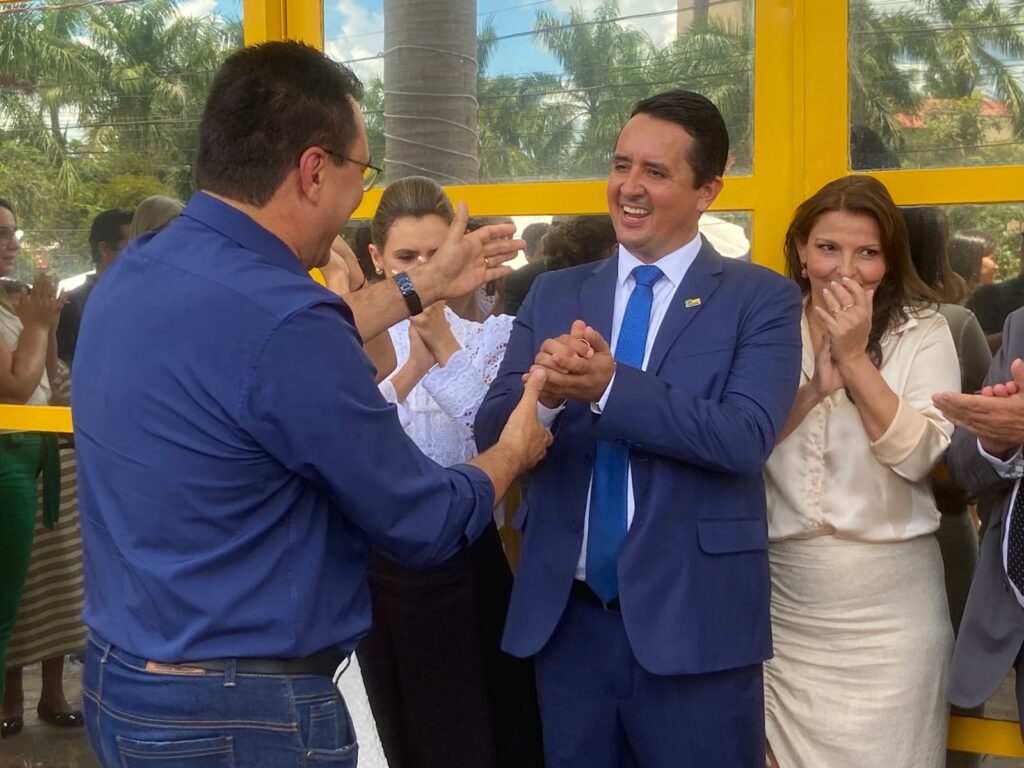 Secretário de educação Saulo Sodré e secretário de finanças Aucirene Assis.