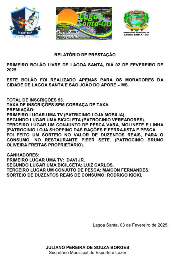 CONFIRA OS GANHADORES DO BOLÃO DE PESQUE SILTE DE LAGOA SANTA Gazeta 03/02/2025 Lagoa Santa GO, Últimas Notícias, Uncategorized Leave a comment 152 Views Related Articles GAZETA NEWS DESEJA FELIZ DIA DAS MULHERES 17 horas ago MÊS DO CONSUMIDOR NO SUPERMERCADO MASTER LOJAS 1 E 2 2 dias ago OFERTAS DIA DA MULHER NO SUPERMERCADO REZENDE 2 dias ago Ontem aconteceu o bolão de pesque e solte no lago municipal de Lagoa Santa. O evento foi organizado pela secretaria de esportes com apoio da prefeitura e dos vereadores. Share Facebook Twitter Stumbleupon LinkedIn Pinterest