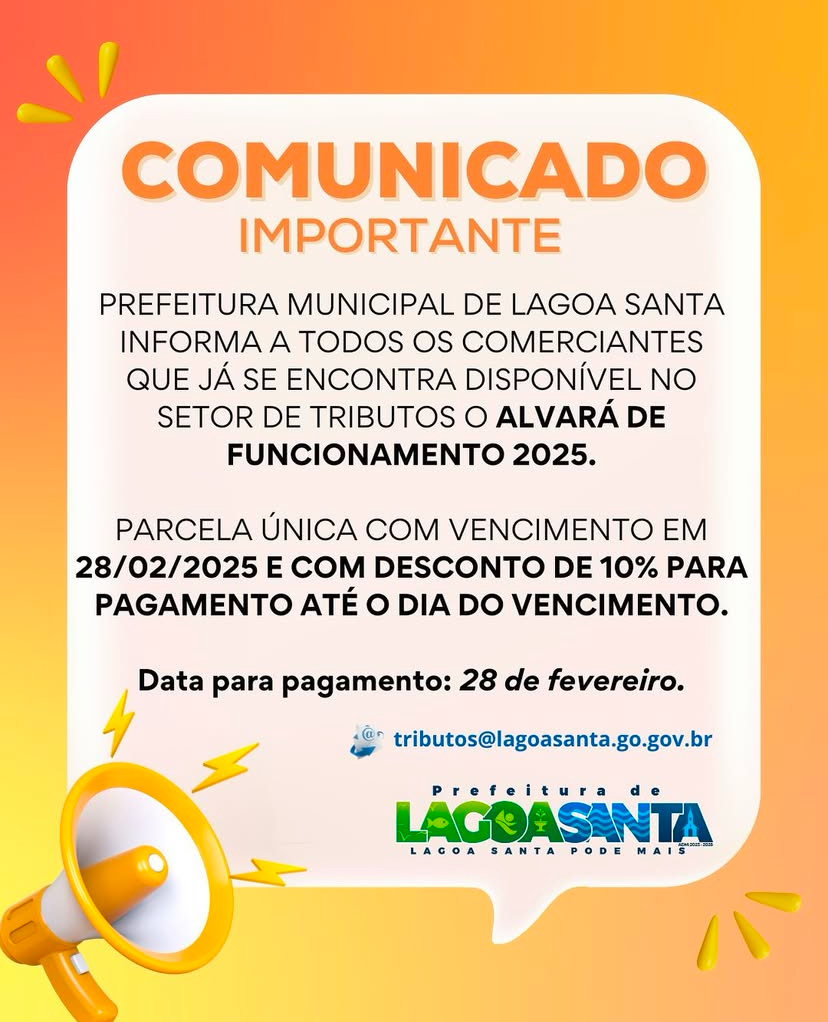 PREFEITURA DE LAGOA SANTA INFORMA A TODOS OS COMERCIANTES DO MUNICÍPIO Gazeta 06/02/2025 Lagoa Santa GO, Últimas Notícias Leave a comment 126 Views Related Articles Balneário Salto do Rio Aporé vira palco de grandes disputas no motocross e atrai pilotos de três estados 2 horas ago CASA DO TRABALHADOR INFORMA VAGAS DE EMPREGO 6 horas ago DIA INTERNACIONAL DA MULHER TEM DATA ADIADA EM LAGOA SANTA 6 horas ago Share Facebook Twitter Stumbleupon LinkedIn Pinterest