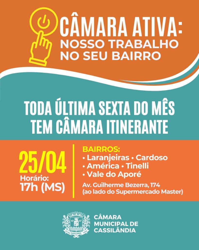 Atenção bairros a câmara itinerante está chegando será dia 25. Vamos participar.