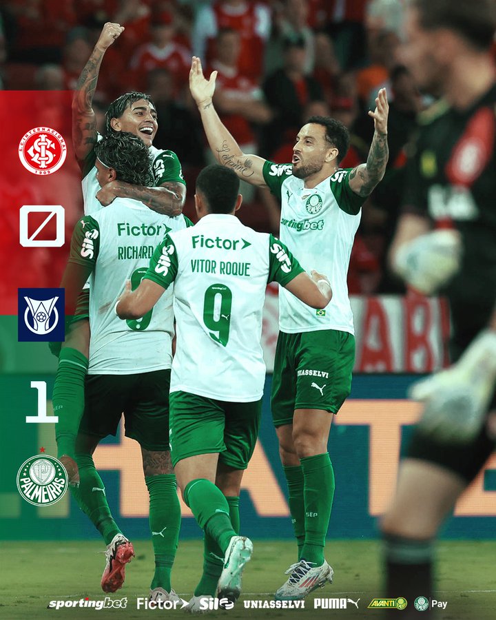 Quem também triunfou para chegar aos dez pontos na competição foi o Palmeiras, que bateu o Internacional por 1 a 0 em pleno estádio Beira-Rio, em Porto Alegre, e ocupa a vice-liderança da classificação.