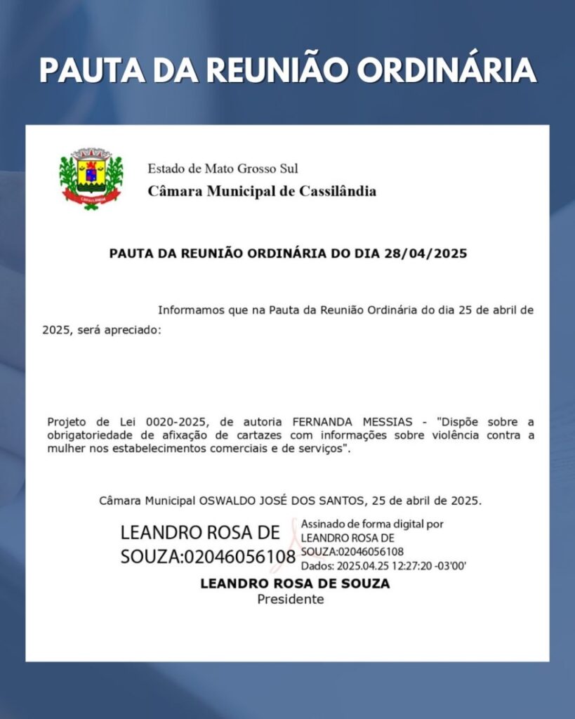 CASSILÂNDIA: Câmara informa sessão amanhã Gazeta 27/04/2025 Cassilândia - MS, Últimas Notícias Leave a comment 94 Views Related Articles PROMOÇÃO CENTER MIX 14 horas ago SEBRAE MS GOVERNO DO ESTADO E PREFEITURA LANÇAM PLANO DE DESENVOLVIMENTO MUNICIPAL EM CASSILÂNDIA 20 horas ago QUINTA DA BOA FORMA NA DROGA SOL 20 horas ago Amanhã tem sessão na câmara de Cassilândia. Veja pauta da noite. Share Facebook Twitter Stumbleupon LinkedIn Pinterest