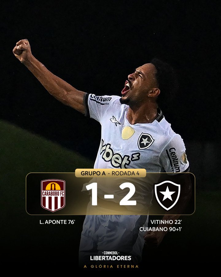 O Botafogo não apresentou um bom futebol, mas conseguiu arrancar uma importante vitória de 2 a 1 sobre o Carabobo (Venezuela), na noite desta terça-feira (6) no estádio Misael Delgado, em Valência (Venezuela), e aumentou as possibilidades de garantir a classificação para as oitavas de final da Copa Libertadores da América.