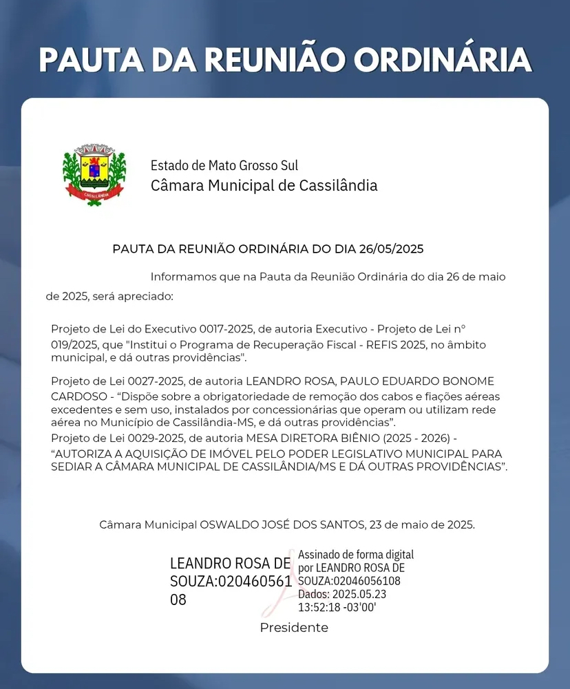 CASSILÂNDIA: Câmara divulga pauta da sessão de amanhã Gazeta 25/05/2025 Cassilândia - MS, Últimas Notícias Leave a comment 74 Views Related Articles PROMOÇÃO LOJA CENTER MIX 2 horas ago MÊS DO CONSUMIDOR NO SUPERMERCADO MASTER LOJAS 1 E 2 5 horas ago OFERTAS DIA DO CONSUMIDOR NO SUPERMERCADO REZENDE 5 horas ago Share Facebook Twitter Stumbleupon LinkedIn Pinterest