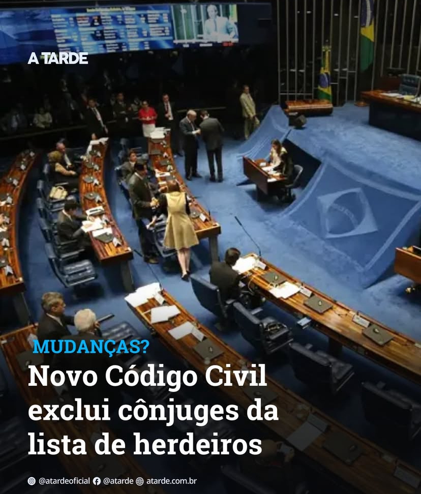 atardeoficial O Senado analisa um projeto de reforma do Código Civil que propõe mudanças importantes na divisão de bens. Cônjuges e companheiros podem deixar de ser herdeiros necessários, ficando atrás de filhos e pais na linha de sucessão. A proposta também retira o direito automático de herança sobre bens adquiridos antes da união.