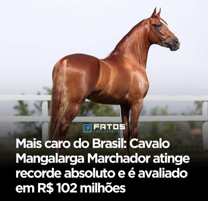 consagra animal como símbolo da excelência genética da raça Mangalarga Marchador brasileira; Esteio de Três Corações é valorizado em R$ 102 milhões ao ter 2,5% de sua propriedade negociada por R$ 2,55 milhões, em 30 parcelas de R$ 85 mil. Cavalo se consagra como um fenômeno em pista e genética.