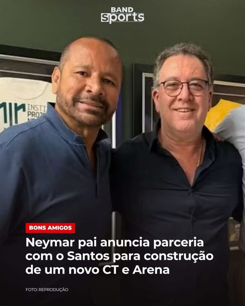 Em coletiva realizada nesta segunda-feira, o pai de Neymar Jr. anunciou uma parceria com o Santos para iniciar as obras de um novo centro de treinamento para o futebol masculino do clube, que será construído na Praia Grande, litoral sul de São Paulo. O empresário também afirmou que atuará junto ao presidente Marcelo Teixeira para viabilizar a construção de um novo estádio para o Peixe, ainda sem local definido. Neymar também afirmou que não haverá custos para os cofres do Santos em ambos os projetos.