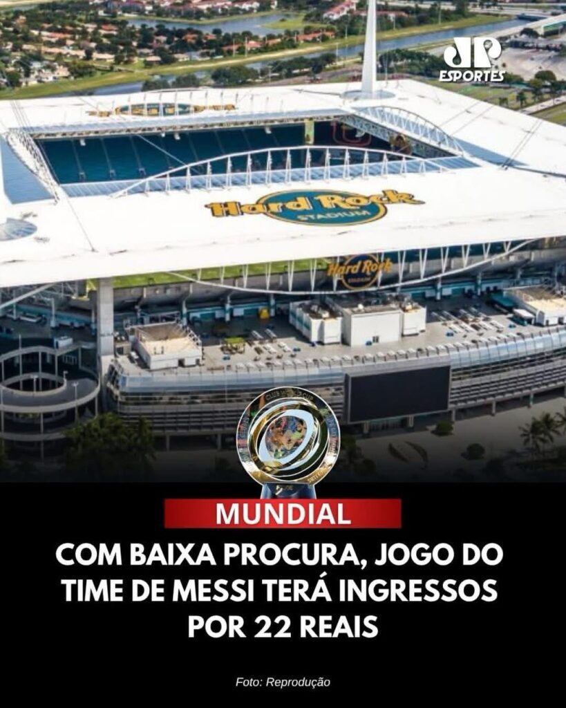 A FIFA está enfrentando dificuldades para atrair público à partida de abertura do Mundial de Clubes, que colocará o Inter Miami frente ao Al Ahly.