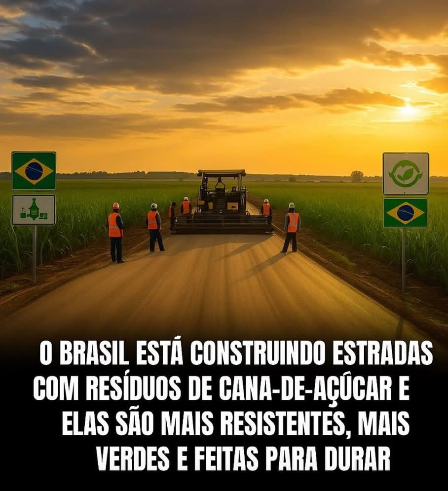 Você sabia? O Brasil está utilizando resíduos da cana-de-açúcar — especialmente o bagaço — para construir estradas mais resistentes, duráveis e sustentáveis!
