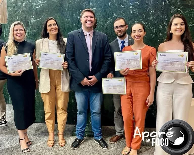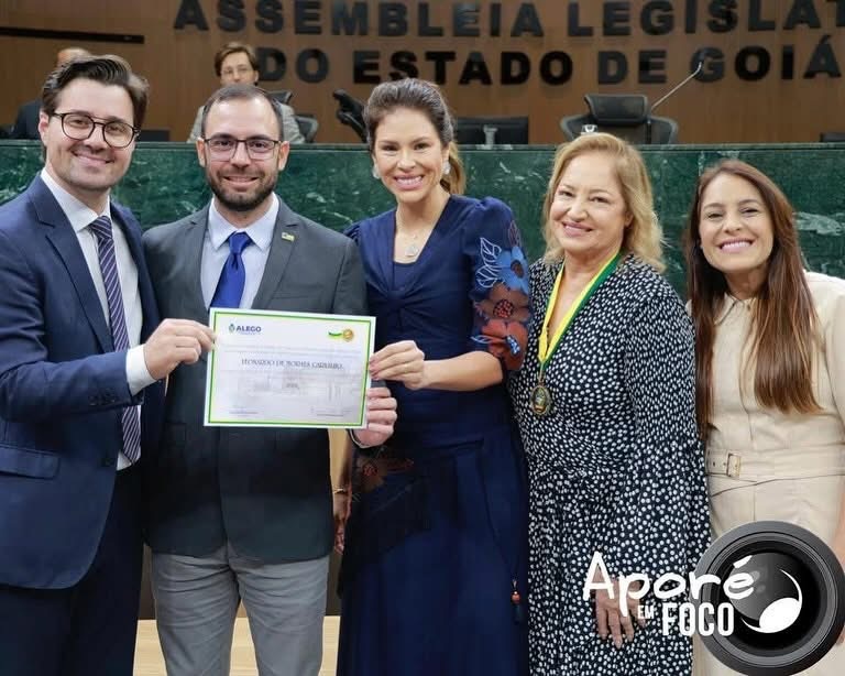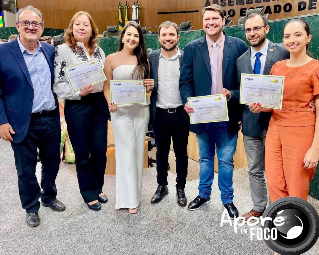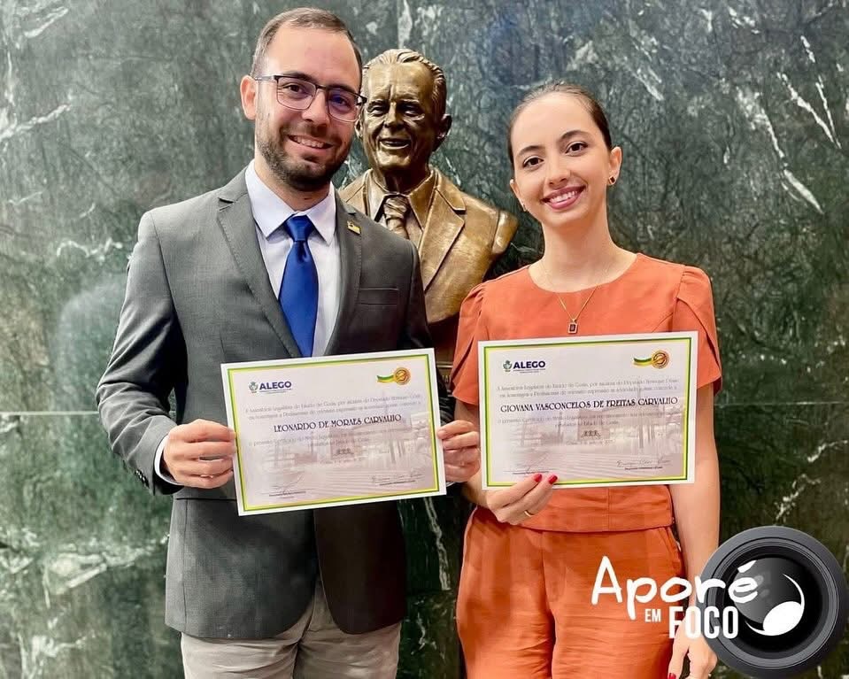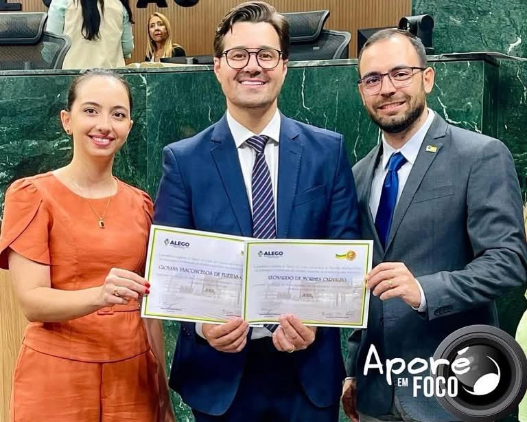 O Prefeito Leonardo Carvalho e a Primeira Dama Giovana Vasconcelos foram homenageados na Assembleia Legislativa de Goiás, em um momento especial promovido pelo Deputado Estadual Henrique César!