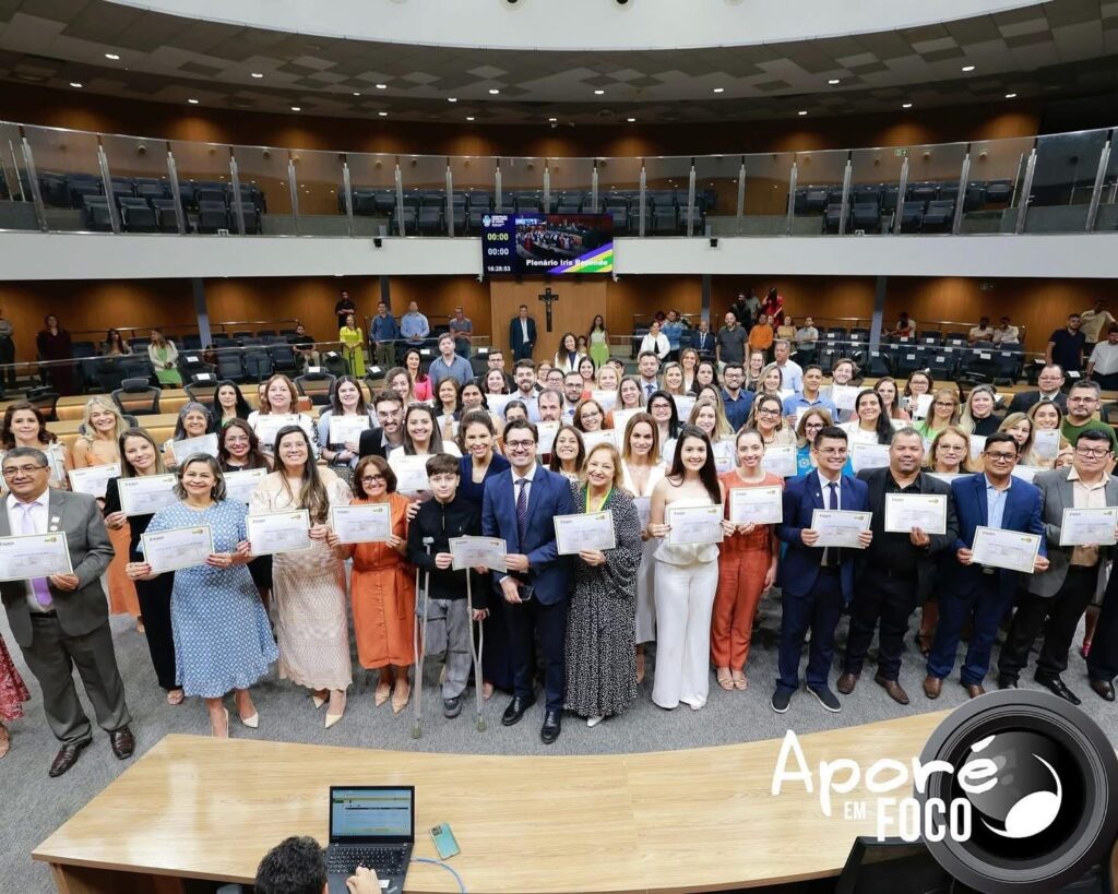 PREFEITO LEONARDO E PRIMEIRA DAMA GIOVANA SÃO HOMENAGEADOS NA ASSEMBLEIA LEGISLATIVA DE GOIÁS