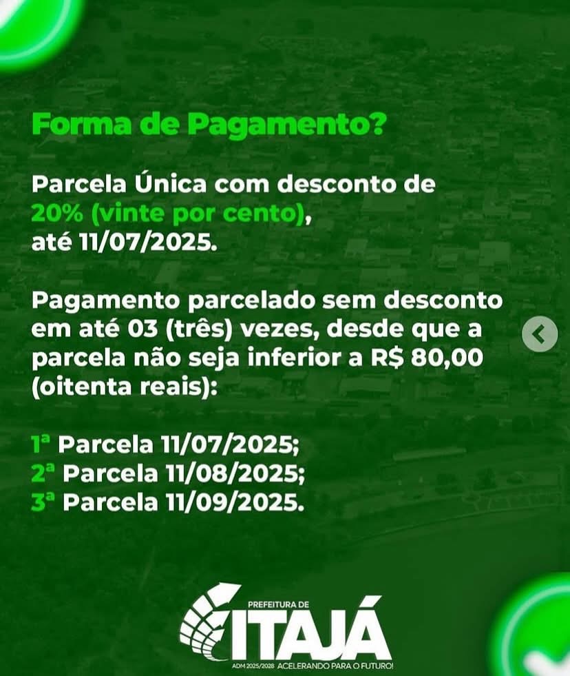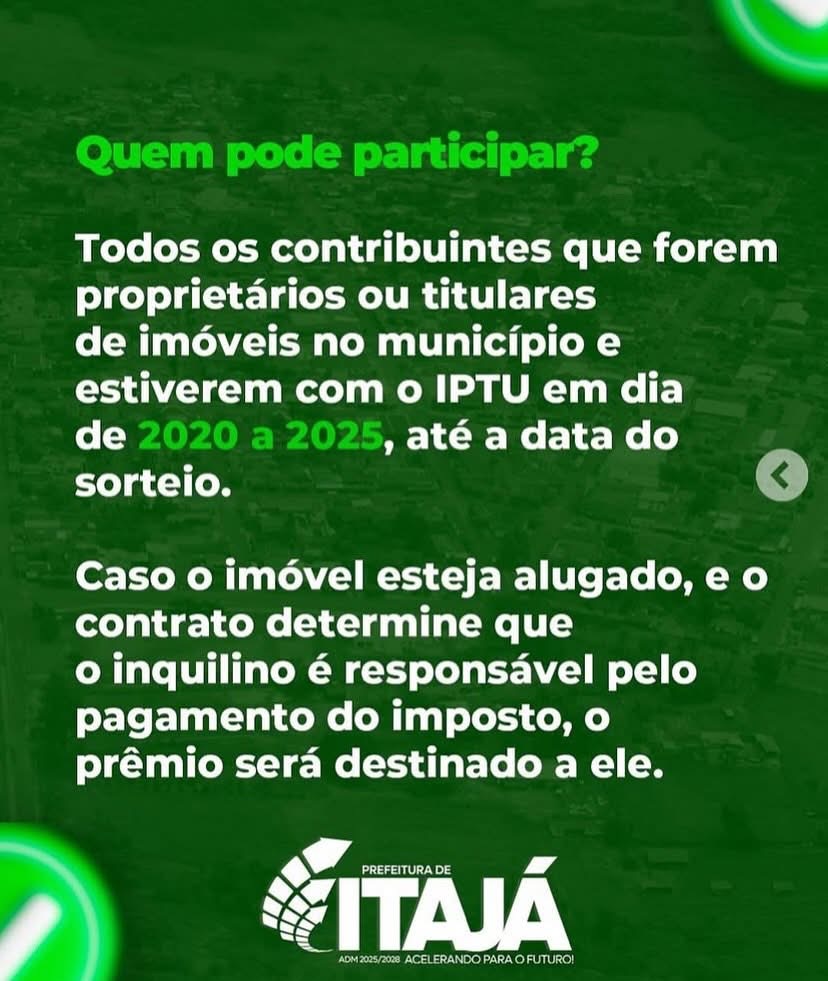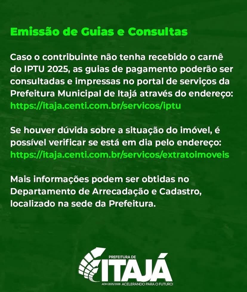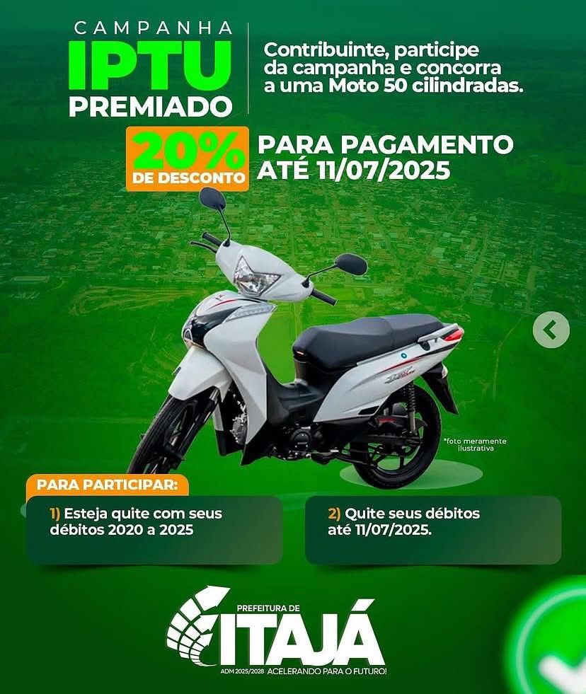 A Prefeitura de Itajá-GO lançou a Campanha IPTU PREMIADO 2025! Pague seu IPTU e concorra a uma moto de 50 cilindradas! 8