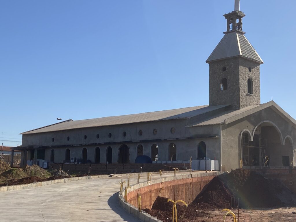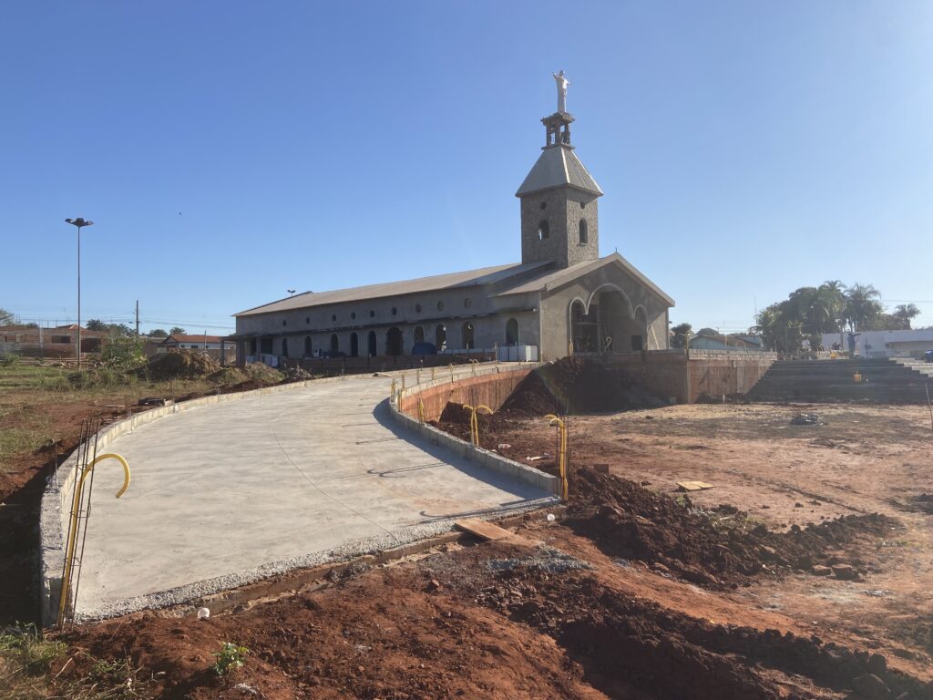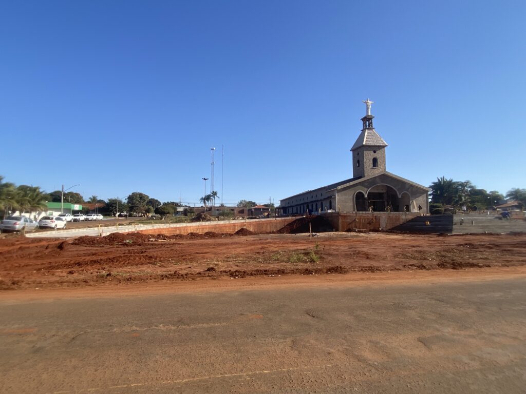 A construção também da casa paroquial e toda a praça também terá uma cara nova. Inclusive o nivelamento da frente da igreja. Veja vídeo.
