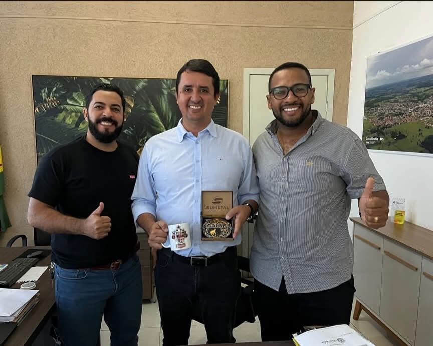 Basileu JR um dia organizadores do desfile dos 71 anos de Cassilândia entregou a fivela referente aos 71 anos da cidade que será um dos prêmios da cavalgada ao prefeito Rodrigo de Freitas e a vice prefeita Sumara. Na foto também aparece o vereador Max Estevo.