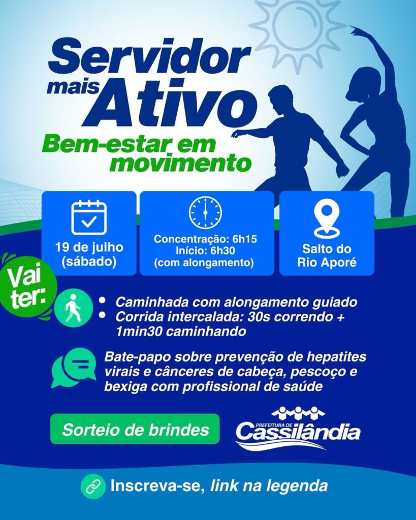 O programa Servidor Mais Ativo realiza no próximo sábado, 19 de julho, mais uma edição especial para incentivar o cuidado com a saúde e a qualidade de vida dos servidores municipais.