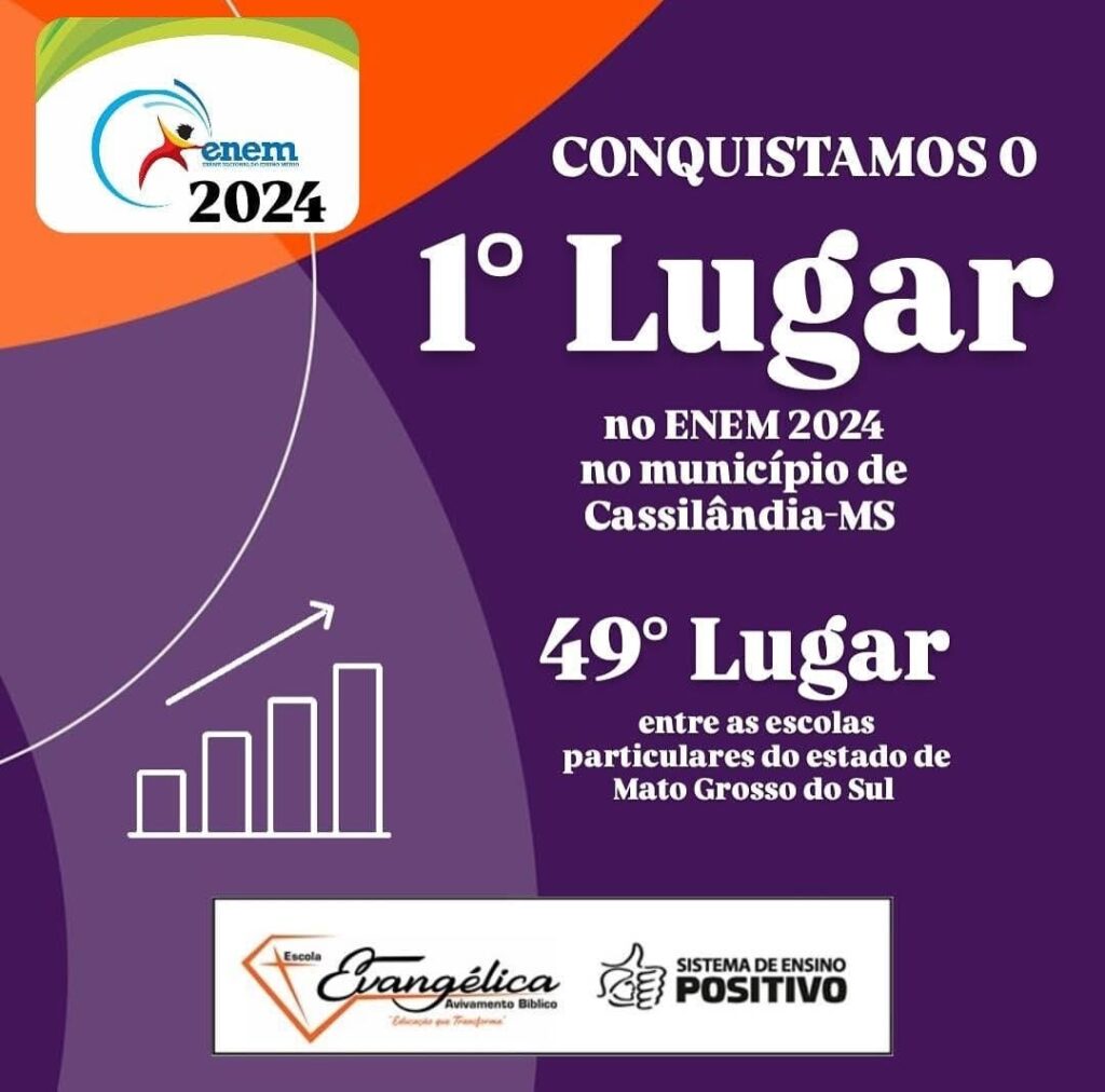 A Escola Evangélica Avivamento Bíblico, de Cassilândia (MS), celebra uma conquista importante na educação local. A instituição alcançou o 1º lugar no município e o 49º lugar no estado no ranking de desempenho do Exame Nacional do Ensino Médio (ENEM) com mais 324 escolas particulares de Mato Grosso do Sul.