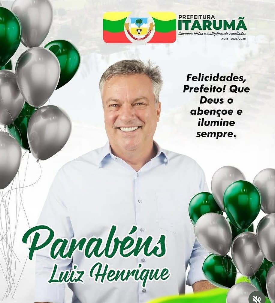 Hoje nossos parabéns vai ao prefeito de Itarumã, Luiz Henrique. A ele nossas felicitações.