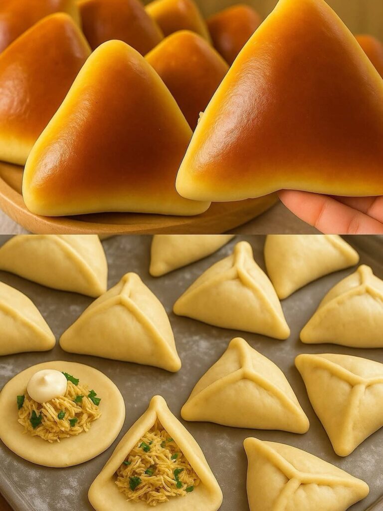 Abra a massa, recheie a gosto (carne, frango, queijo) e modele as esfirras.