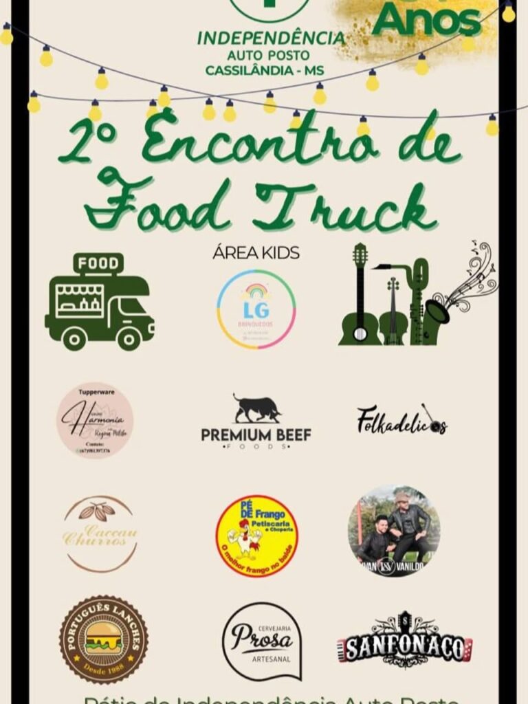 Para comemorar 54 ANOS, nos dias 5, 6 e 7 de setembro, nos do INDEPENDÊNCIA AUTO POSTO realizaremos o 2º Encontro de Food Truck.