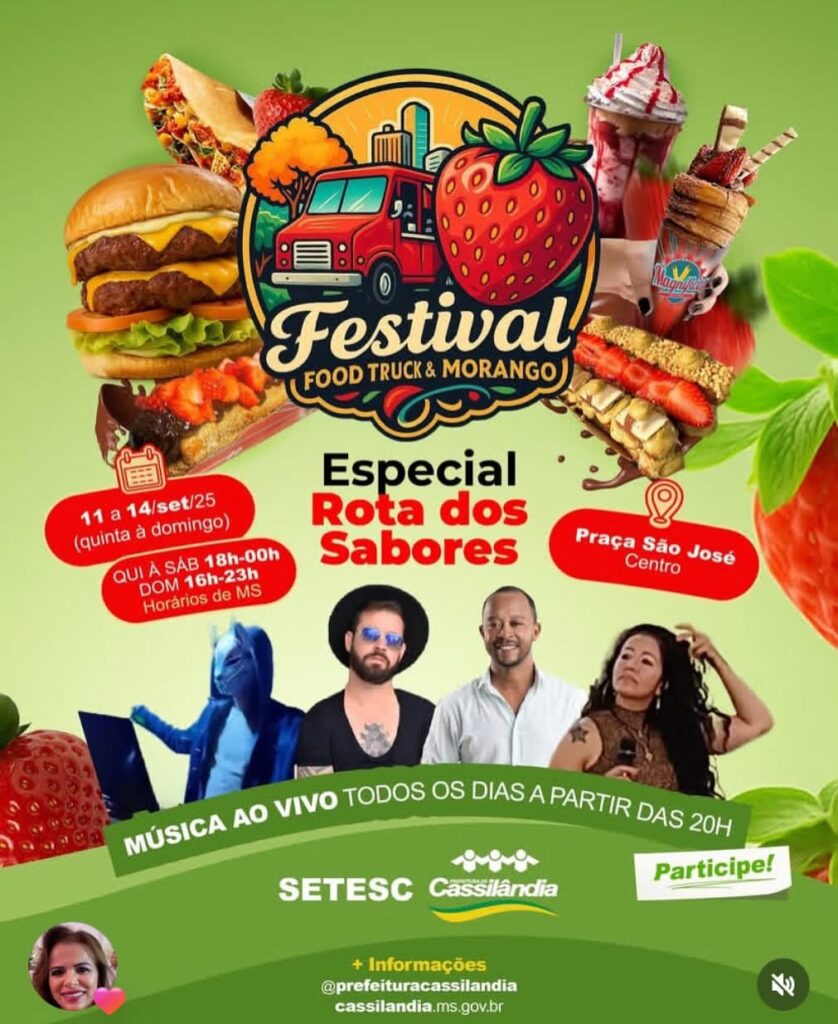 FESTIVAL FOOD TRUCK E MORANGO Gazeta 09/09/2025 Cassilândia - MS, Últimas Notícias Leave a comment 55 Views Related Articles PREFEITURA MUNICIPAL DE CASSILÂNDIA INSTALA NOVAS PLACAS DE SINALIZAÇÃO NO SALTO DO RIO APORÉ 21 horas ago CAMPANHA DO AGASALHO EM APORÉ 21 horas ago GRANDE CAVALGADA EM APARECIDA DO TABOADO 21 horas ago Share Facebook Twitter Stumbleupon LinkedIn Pinterest