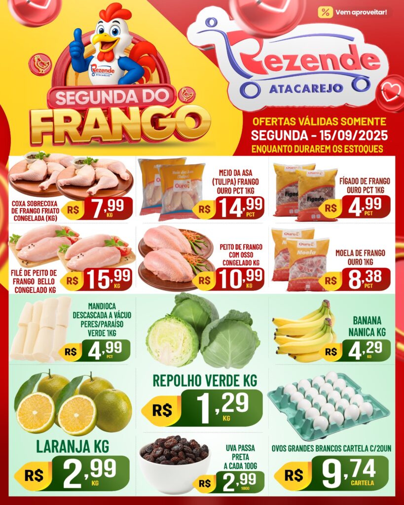 Comece a semana aproveitando cortes especiais de frango com aquele precinho que só o Rezende tem!