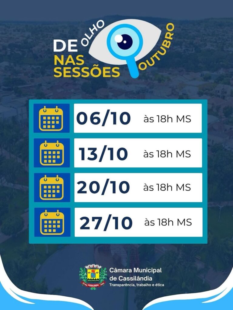 CÂMARA MUNICIPAL DE CASSILÂNDIA INFORMA SESSÃO Gazeta 04/10/2025 Cassilândia - MS, Últimas Notícias Leave a comment 59 Views Related Articles MÊS DO CONSUMIDOR NO SUPERMERCADO MASTER LOJAS 1 E 2 5 horas ago OFERTAS DIA DA MULHER NO SUPERMERCADO REZENDE 6 horas ago 1° PAGODE COM FEIJOADA EM LAGOA SANTA 6 horas ago Share Facebook Twitter Stumbleupon LinkedIn Pinterest