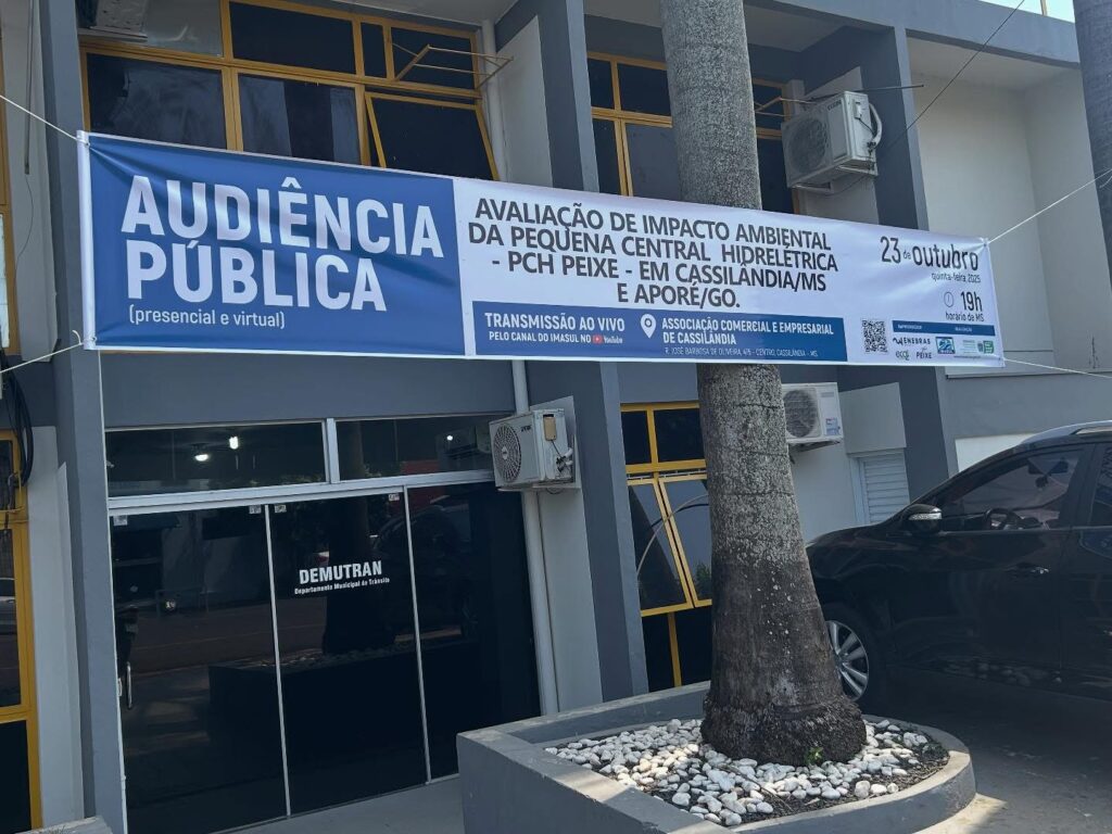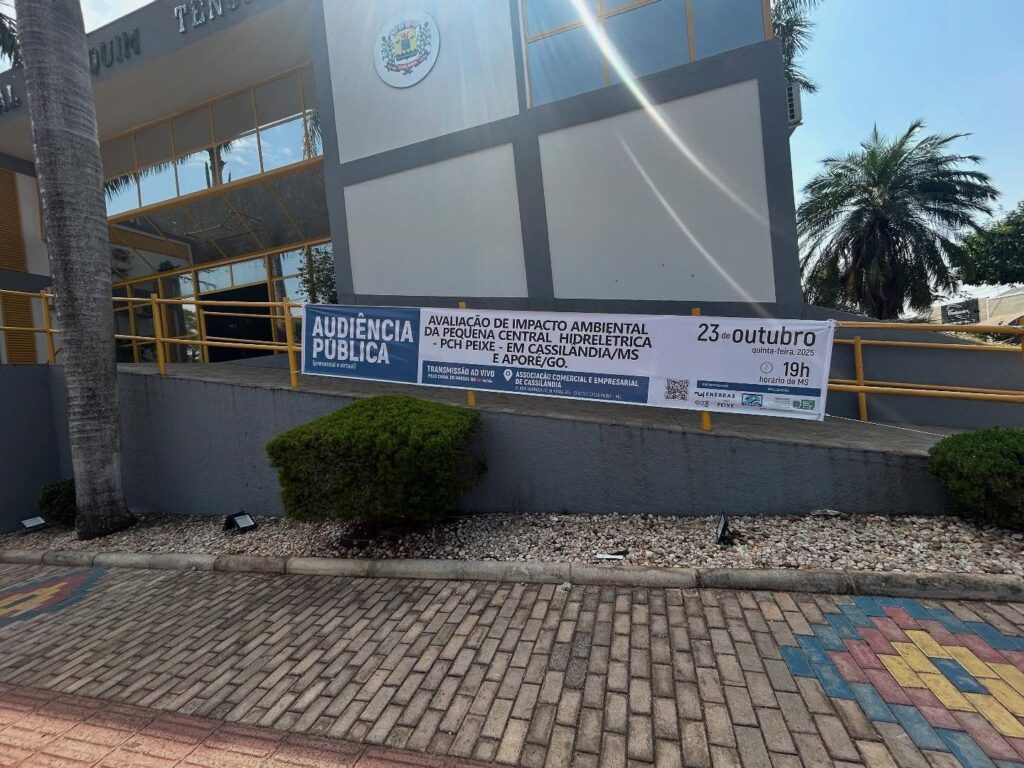 Além de editais em todos os jornais e meios de comunicação da cidade de Cassilândia a empresa responsável pela construção da PCH Peixe que será contraída no fundo da chácara Buritizinho no Rio Aporé em Cassilândia já está fazendo a divulgação também em faixas nos prédios públicos municipais. O convite pra audiência pública que será no dia 23 de outubro no salão da Acec de Cassilândia.