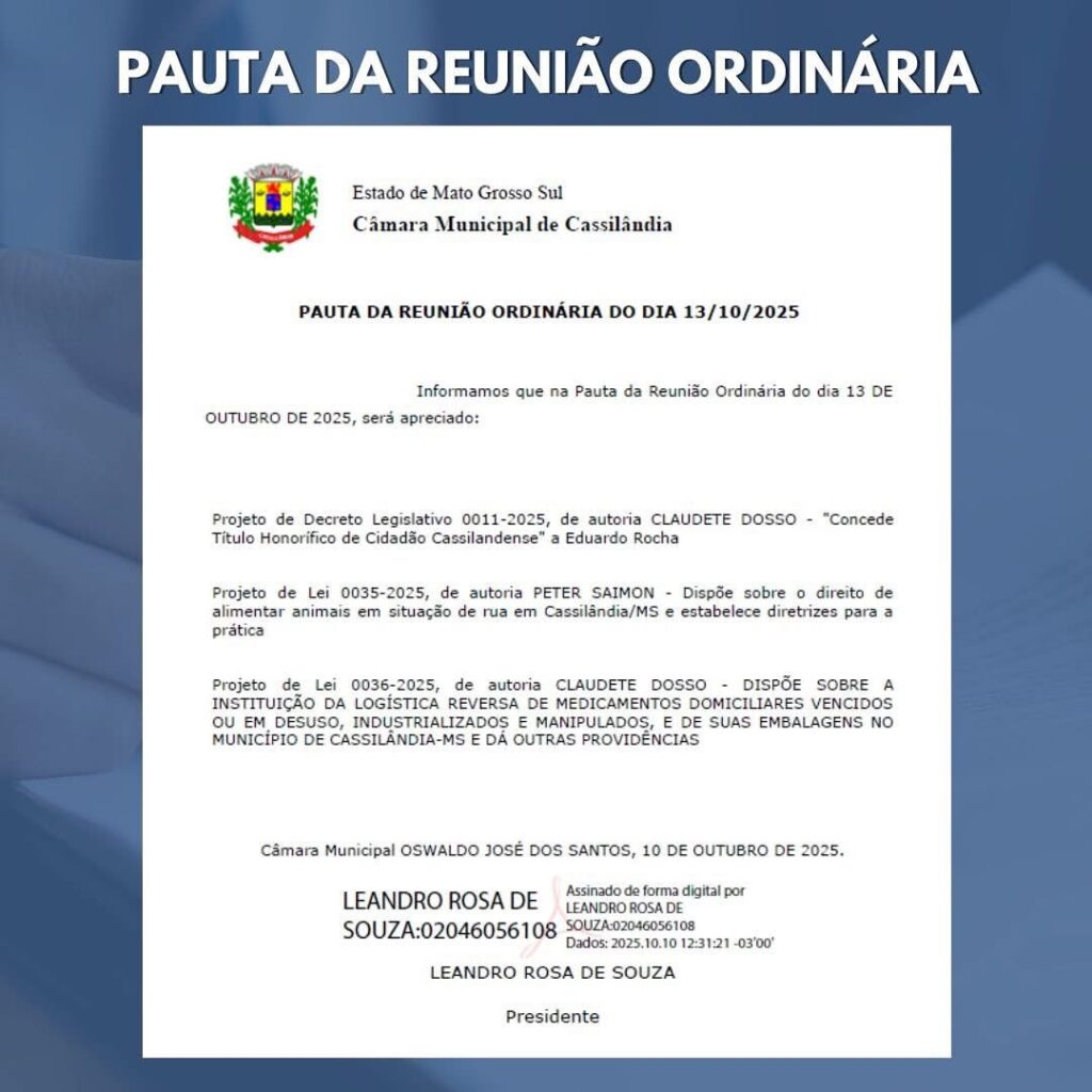 CÂMERA MUNICIPAL DE CASSILÂNDIA INFORMA SESSÃO E PAUTA Gazeta 11/10/2025 Cassilândia - MS, Últimas Notícias Leave a comment 57 Views Related Articles MÊS DO CONSUMIDOR NO SUPERMERCADO MASTER LOJAS 1 E 2 5 horas ago OFERTAS DIA DA MULHER NO SUPERMERCADO REZENDE 5 horas ago 1° PAGODE COM FEIJOADA EM LAGOA SANTA 6 horas ago Share Facebook Twitter Stumbleupon LinkedIn Pinterest