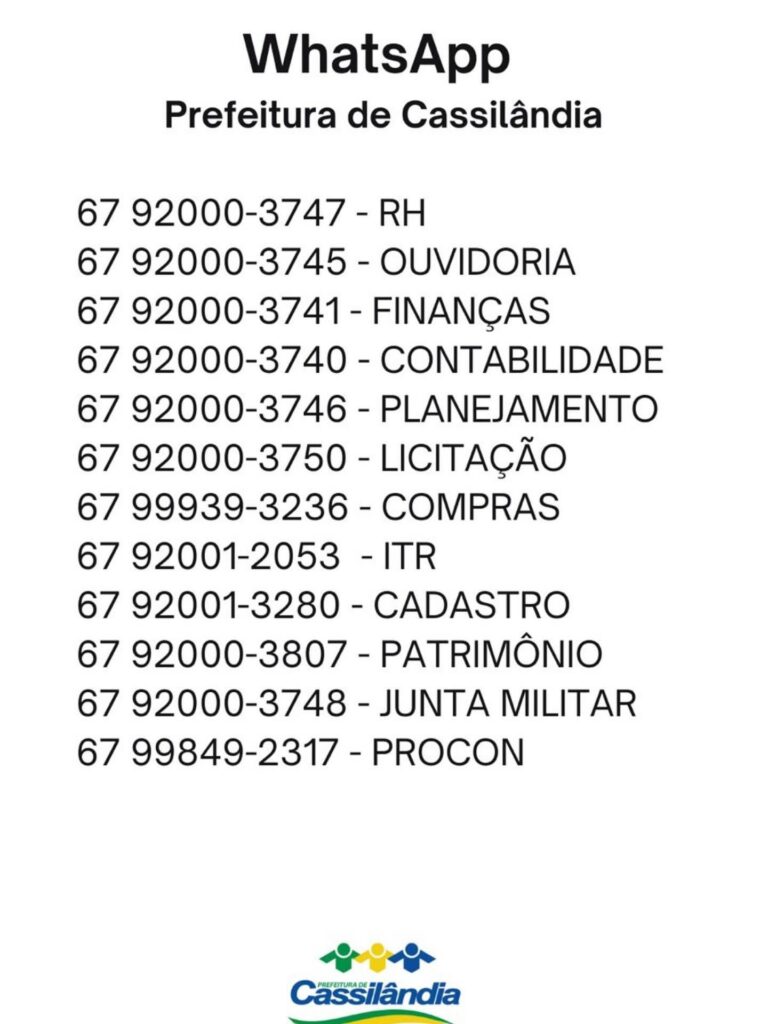 PREFEITURA MUNICIPAL DE CASSILÂNDIA INFORMA Gazeta 06/11/2025 Cassilândia - MS, Últimas Notícias Leave a comment 81 Views Related Articles PREFEITURA MUNICIPAL DE CASSILÂNDIA INSTALA NOVAS PLACAS DE SINALIZAÇÃO NO SALTO DO RIO APORÉ 18 horas ago CAMPANHA DO AGASALHO EM APORÉ 18 horas ago GRANDE CAVALGADA EM APARECIDA DO TABOADO 18 horas ago Share Facebook Twitter Stumbleupon LinkedIn Pinterest