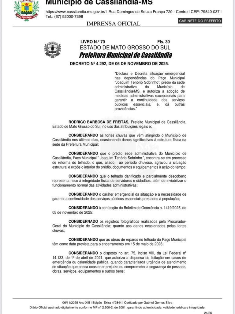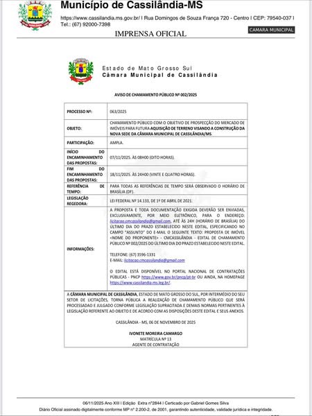 CÂMARA MUNICIPAL DE CASSILÂNDIA PÚBLICA CHAMAMENTO PARA AQUISIÇÃO DE UM TERRENO PARA A CONSTRUÇÃO DE SEDE PRÓPRIA DO PODER LEGISLATIVO Gazeta 10/11/2025 Cassilândia - MS, Últimas Notícias Leave a comment 106 Views Related Articles CASSILÂNDIA APRESENTA PLANO DE DESENVOLVIMENTO MUNICIPAL COM FOCO EM CRESCIMENTO SUSTENTÁVEL E PARTICIPAÇÃO COLETIVA 11 horas ago PROMOÇÃO LOJA CENTER MIX 13 horas ago SEXTA DA BELEZA NA DROGA SOL 13 horas ago Share Facebook Twitter Stumbleupon LinkedIn Pinterest
